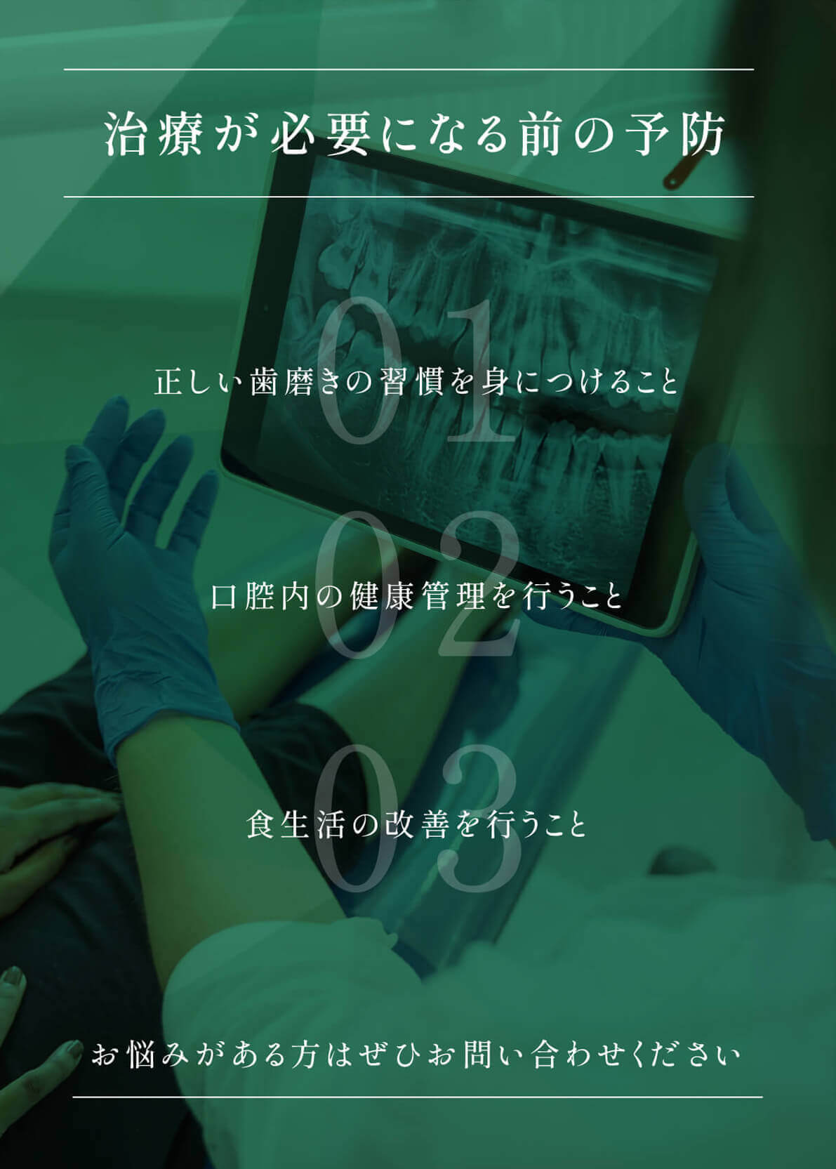 まず最初に、虫歯が深く進行しているか、神経に感染が広がっているかどうかを確認します。レントゲン撮影や触診などを行い、治療の必要性や治療方針を決定します。